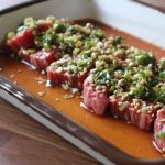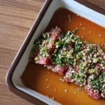 這堂課將介紹用平底鍋或可在瓦斯爐上使用的韓式烤肉盤就能完成的燒肉,完全可以在家吹著冷氣吃,保證不滴汗。而說到燒肉,當然是牛肉了,三款在日式燒肉店常見的部位,包括橫隔膜、翼板與壺漬牛肋條,搭配三款不同風味的醃醬;除了牛肉,還有日式串燒定番的串烤雞肉丸,是牛肉之外的另一選擇。