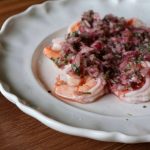 除了燒肉外,兩款爽口的涼菜,和風莎莎醬大蝦與韓風漬蔬菜,是等待肉烤熟之前的絕佳下酒菜。