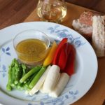 熱水澡沙拉(Bagna Caude)為義大利北部皮耶蒙省的特色菜餚之一,或生或熟的蔬菜搭配帶有濃厚鯷魚與大蒜為風味的溫熱沾醬,就像幫蔬菜洗熱水澡一般,除了做為主菜前的開胃前菜外,更適合當成一群親友聚餐的下酒小菜。