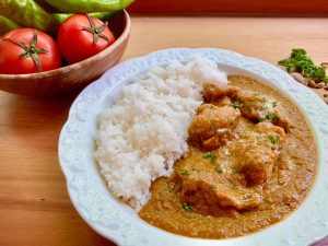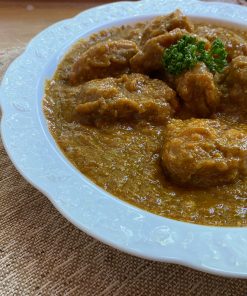 內容物: 去骨仿土雞腿、雞高湯、洋蔥、蕃茄、青椒、腰果、嫩薑、咖哩粉、蒜仁、香菜、鹽、蜂蜜、奶油、麵粉、紅辣椒、黑胡椒、薑黃粉、孜然粉、綠荳蔻